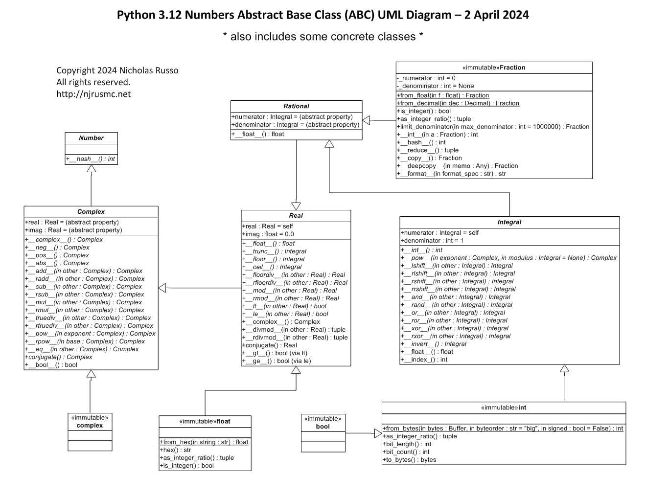 Python 'numbers' UML Class Diagram